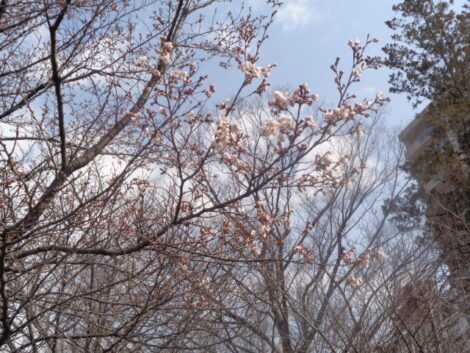 このところの暖かい陽気で片倉館庭園の池の側の桜が
